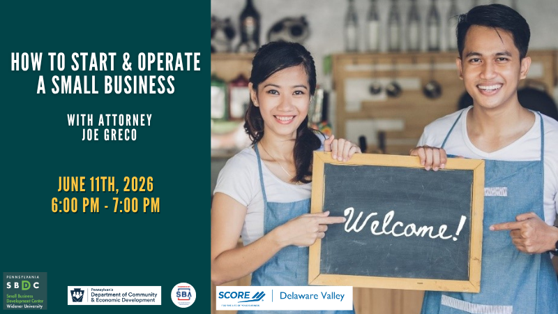sbdc-admin2026-04-08T09:45:56-04:0006/11/2026| If you are in the early stages of starting a small business, or if you have started up your business and realized you missed a few things - you have come to the right place. Join attorney Joe Greco. Esq. in a discussion of the ‘nuts and bolts” issues that should be considered when starting and operating a small business. Frank will discuss topics including the need and usefulness of developing a business plan; selecting a business organizational structure; fictitious name registration; licensing; hiring employees vs. independent contractors; obtaining tax identification numbers and other related topics.|